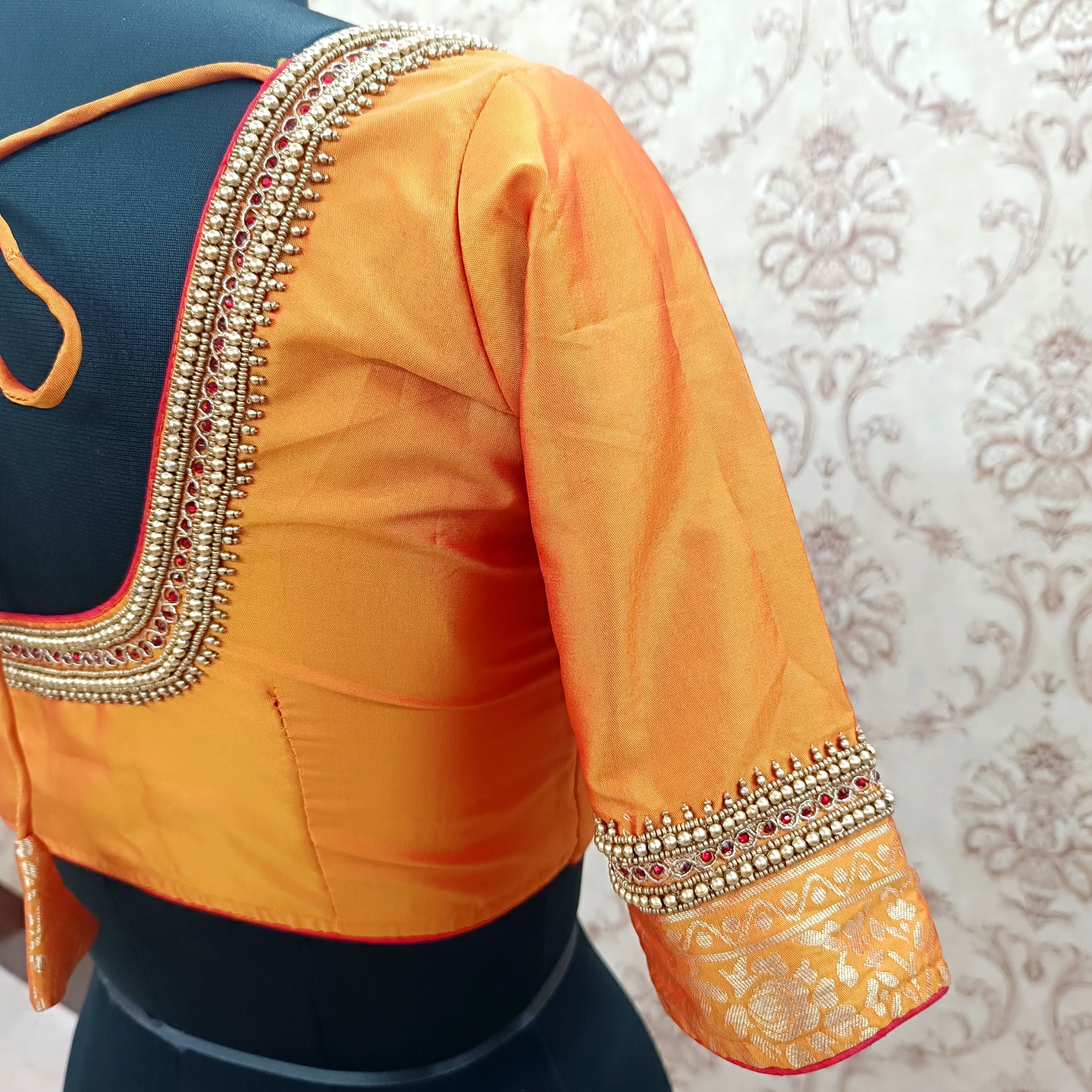 Gorgeous Katan Silk Hand Aari Work Designer Handmade Blouse