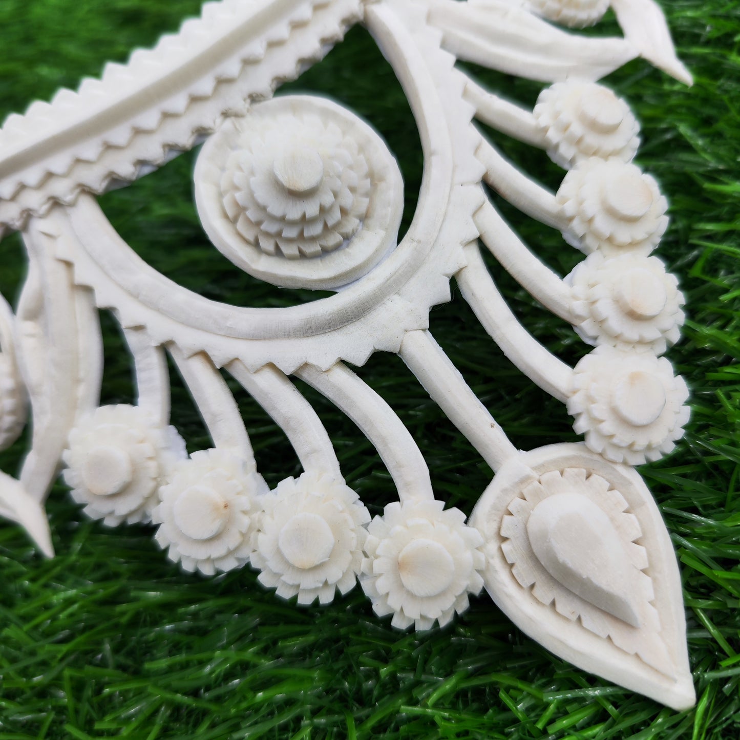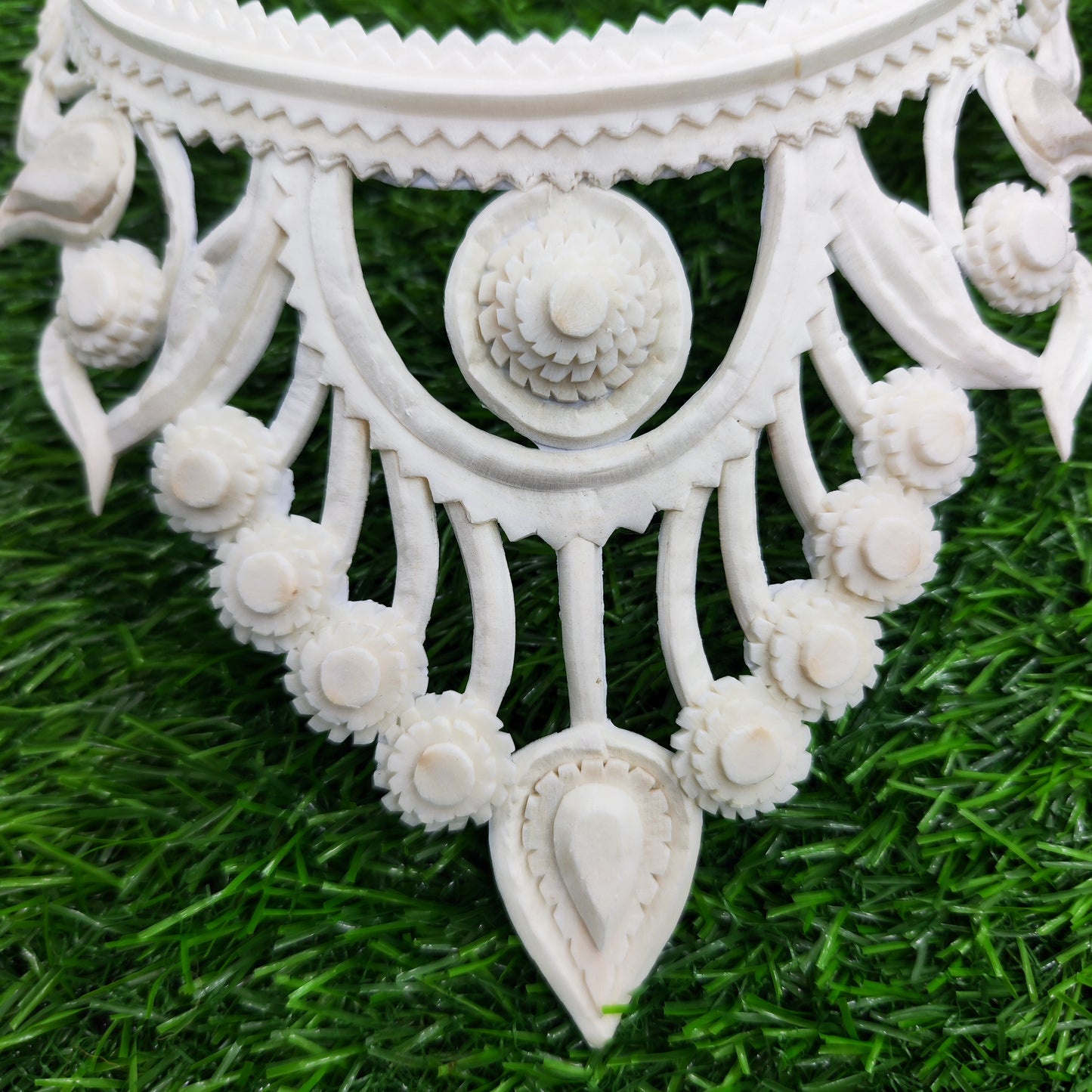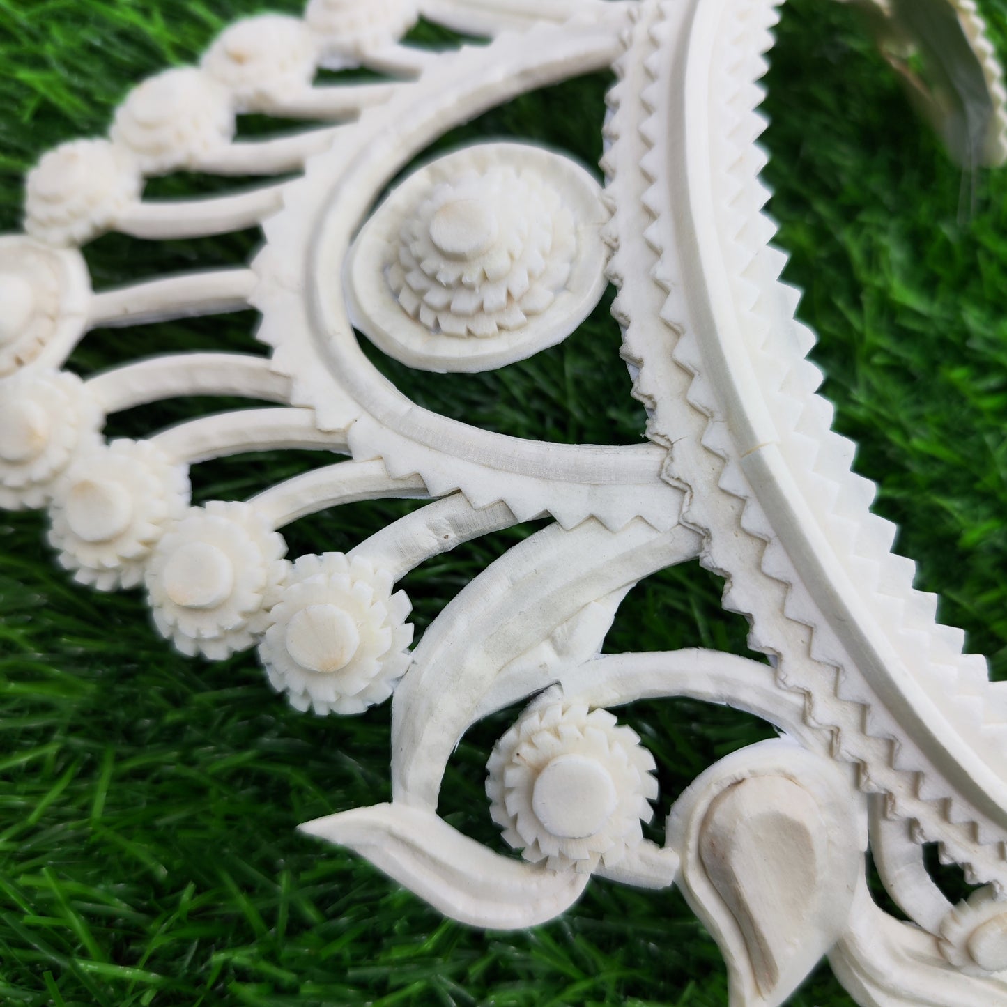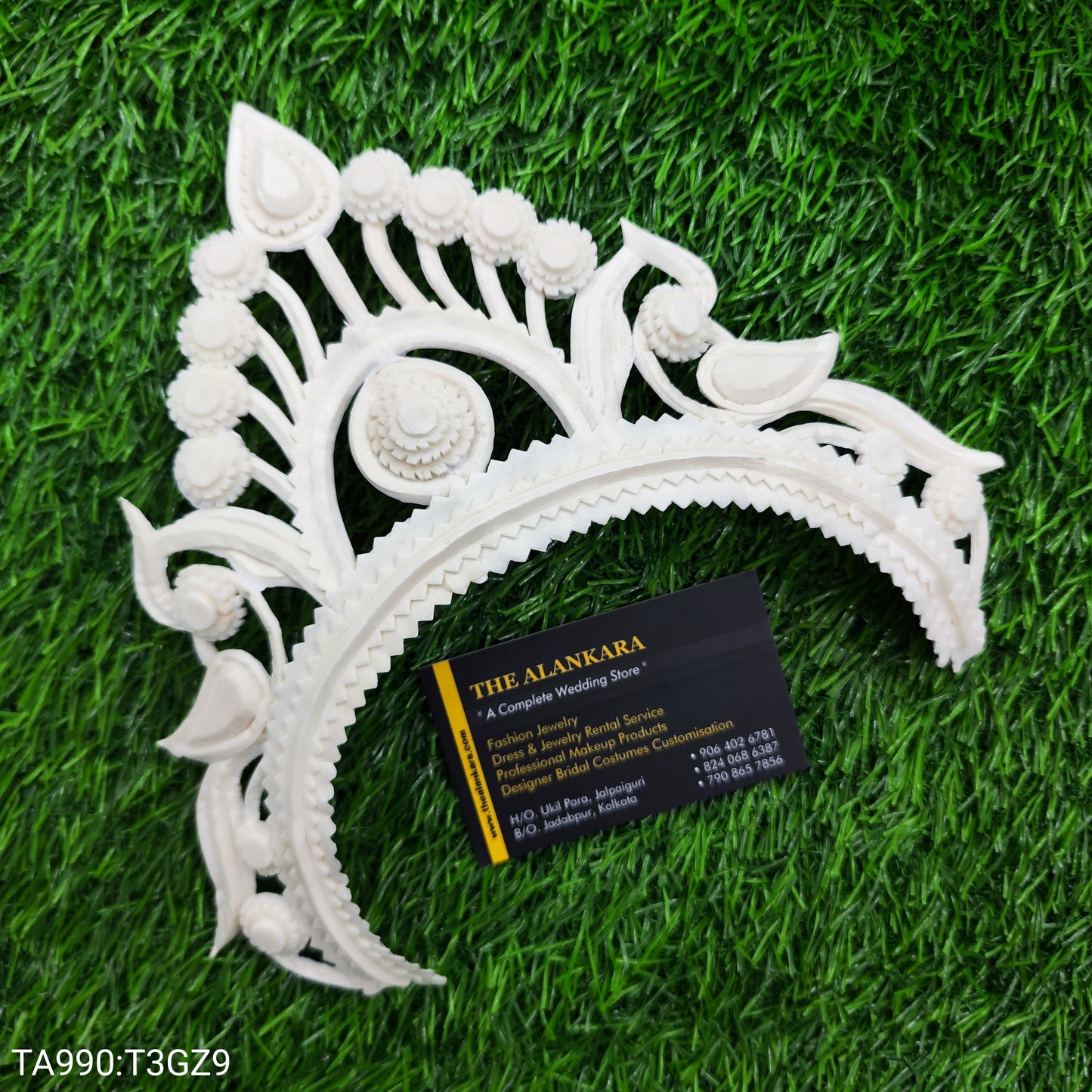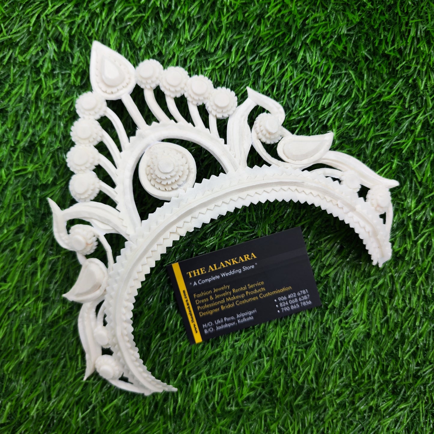 - Product Description: This bridal crown is created by shola wood with handicraft touch. Traditional bengali bride uses this sola mukut for maintaining bridal ritual and looks nice. This shola is a organic product. Shola wood is a plant and soft part of this plant is used to make this bridal crown. With creative soft touch of artist and beauty of white shola this wedding crown is developed. Size is free to adjust all head and it has a wire back side so that it can be bend easily. Cotton thread also there to tie over the head. Crown's soft and elegant looks enhance the beauty of bride.
