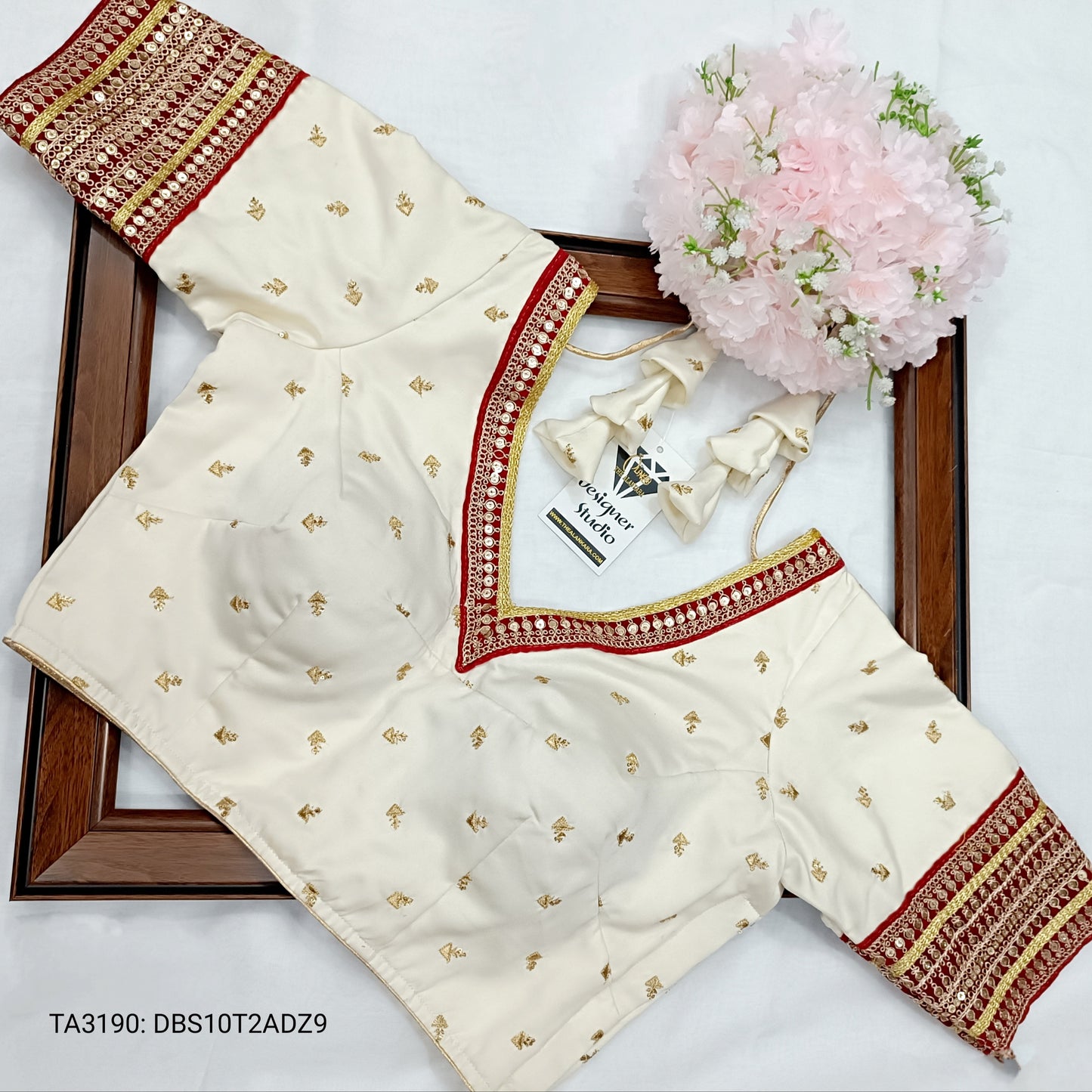 Ivory White & Red Contrast Soft Malai Silk Zari Work Designer Blouse.