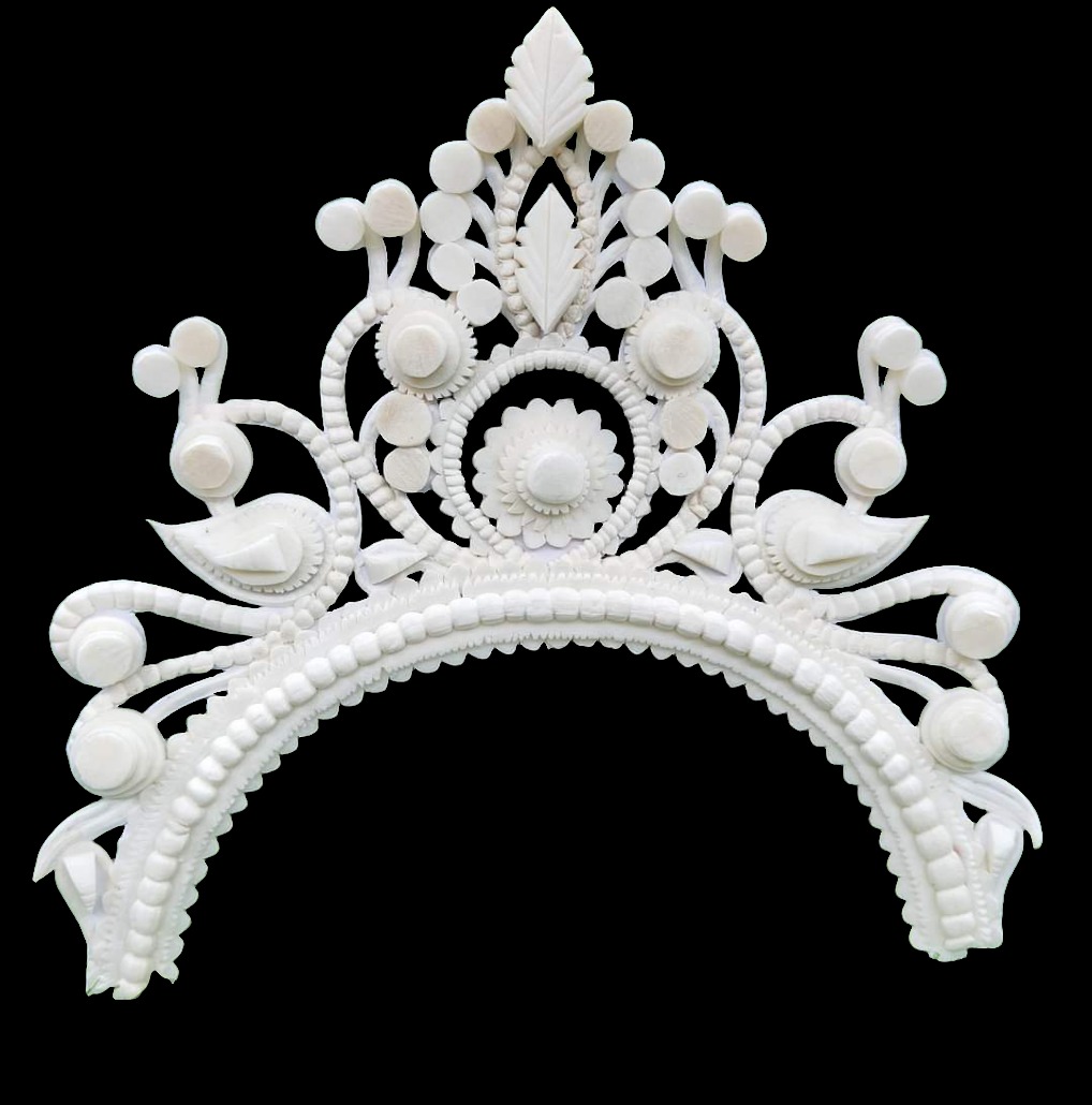 - Product Description: This bridal crown is created by shola wood with handicraft touch. Traditional bengali bride uses this sola mukut for maintaining bridal ritual and looks nice. This shola is a organic product. Shola wood is a plant and soft part of this plant is used to make this bridal crown. With creative soft touch of artist and beauty of white shola this wedding crown is developed. Size is free to adjust all head and it has a wire back side so that it can be bend easily. Cotton thread also there to tie over the head. Crown's soft and elegant looks enhance the beauty of bride.